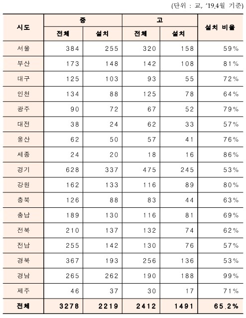 현재 전국 중·고등학교 중 탈의시설을 갖춘 학교는 전체의 65.2%(3,710교)로, 아직 상당수는 이처럼 탈의시설이 갖추어져 있지 않다고 합니다. 관리 미비, 낮은 접근성 등의 이유로 설치되어 있어도 활용도가 낮은 학교 탈의시설도 많은 실정이고요.