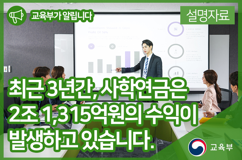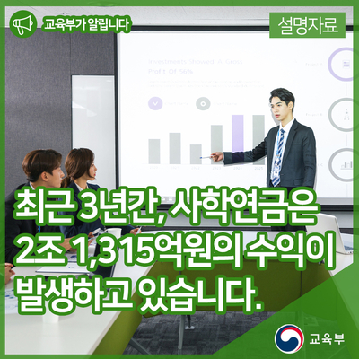 최근 3년간, 사학연금은 2조 1,315억원의 수익이 발생하고 있습니다. 본문