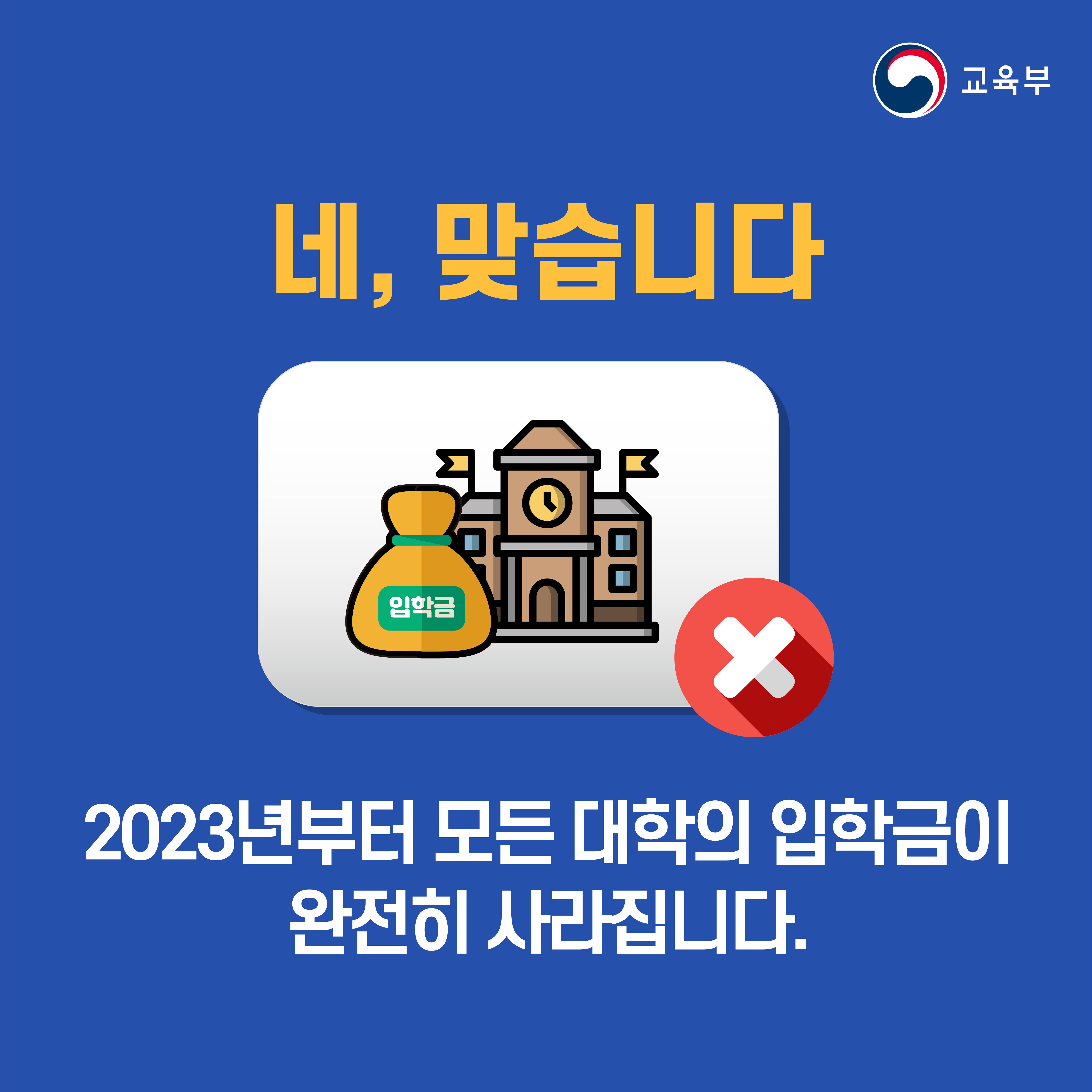 2023년부터는 사립대 입학금도 완전히 사라집니다~