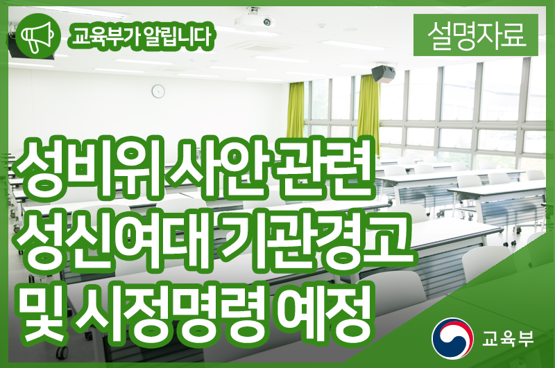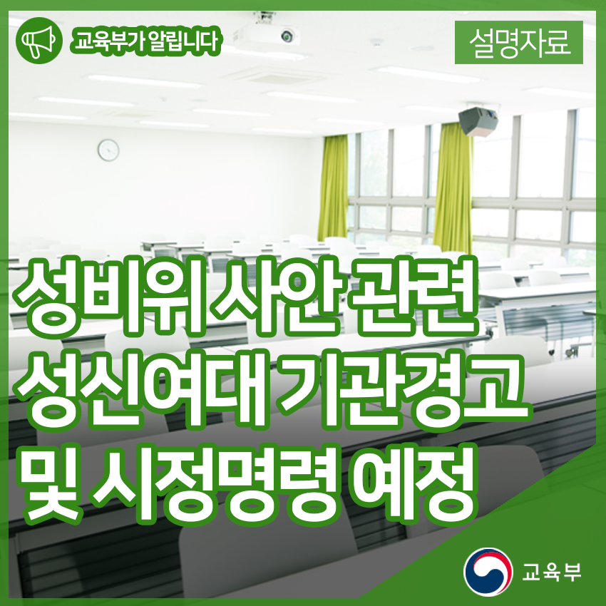 성비위 사안과 관련하여, 성신여대에 기관경고 및 시정명령을 할 예정입니다. 본문