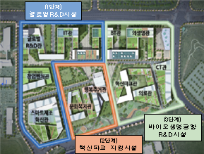 - 바이오헬스케어, 에너지 신산업 등 기업·지원기관 공간, R&BD센터 조성(1단계, ∼22)