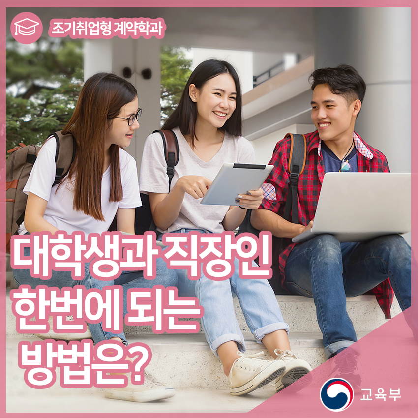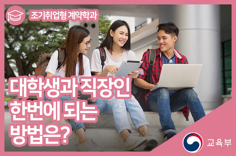 ‘조기취업형 계약학과’가 뭐하는 학과야? 라고 고개를 갸우뚱 하실 분들이 계실텐데요. ‘조기취업형 계약학과’란 '조기취업형 계약학과 선도대학 육성사업’의 일환으로 마련됐습니다. 해당 학과는 개인에게는 진학 욕구와 조기 취업 목적을 달성할 수 있도록 하고, 기업에게는 4차 산업혁명 시대 맞춤형 인재를 양성해 기업의 경쟁력을 강화하고 청년 일자리 창출 마련을 목표 개설된 학과입니다.