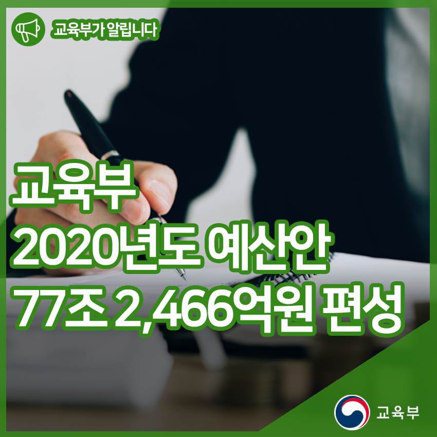 교육부 2020년도 예산안 77조 2,466억원 편성