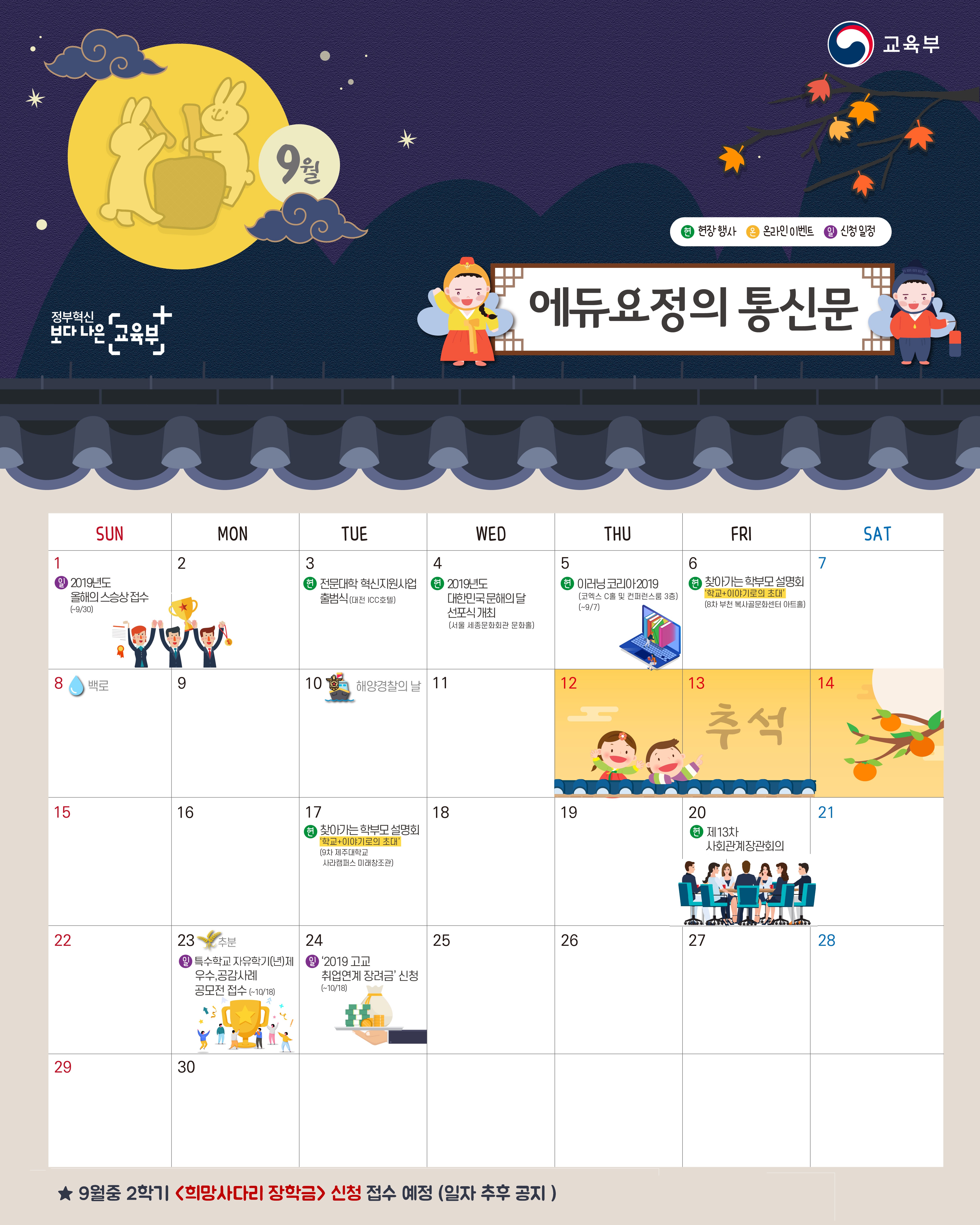 개학 소식과 추석이 있는 문해의 달 9월,