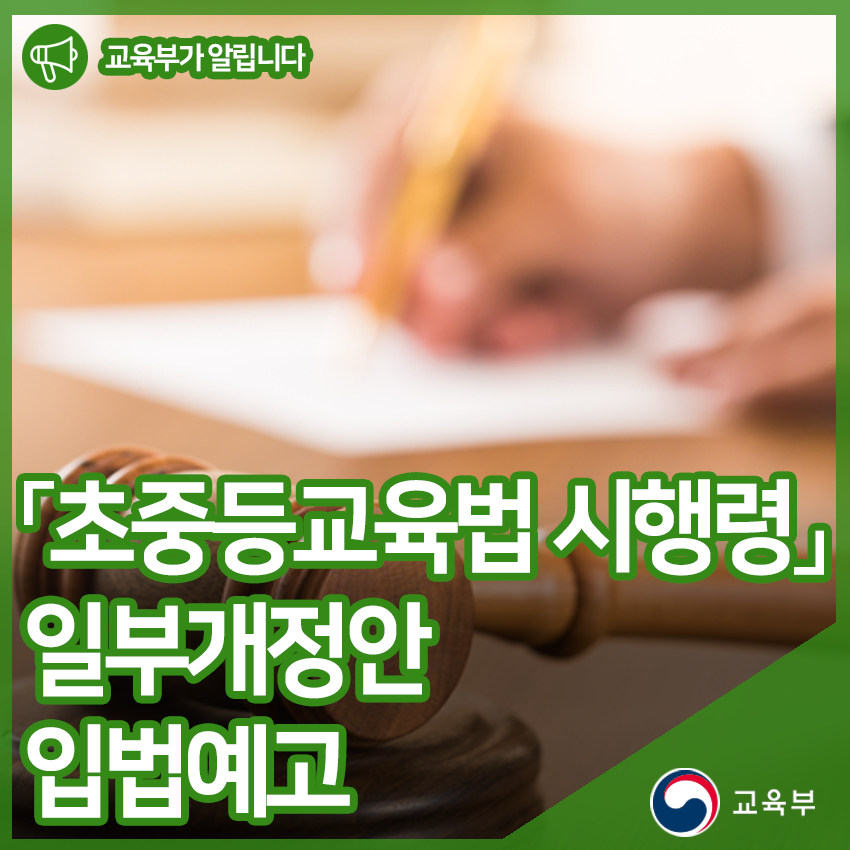 「초중등교육법 시행령」일부개정안 입법예고