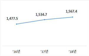 ’18년 일반대학 및 교육대학 학생 1인당 교육비*(결산 기준)는 1,567.4만원으로 전년(1,534.7만원)보다 32.7만원(2.1%) 증가하였다.