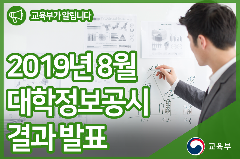 교육부(부총리 겸 교육부장관 유은혜)와 한국대학교육협의회(회장 김헌영)는 8월 31일(토) 「2019년 8월 대학정보공시 분석 결과」를 발표하였다.