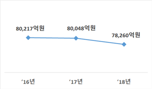 ’18년 일반 사립대학 교비회계 적립금* 7조 8,260억원(결산 기준)으로 전년(8조 48억원)보다 1,788억원(△2.2%) 감소하였고, ’15년부터 대학의 적립금 규모는 지속적인 감소 추세를 보이고 있다.