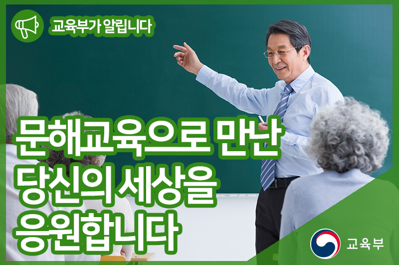 이번 캠페인은 유은혜 부총리 겸 교육부장관, 윤여각 국가평생교육진흥원장이 문해교육 참여 의지를 북돋는 응원메시지를 담아 9월 한 달 간 송출된다.