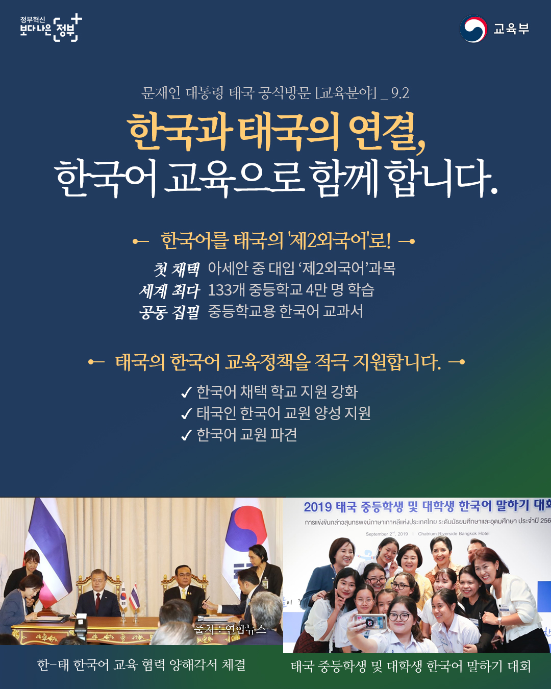 문재인 대통령의 태국 공식방문 중 교육분야 주요 내용을 전달드립니다.