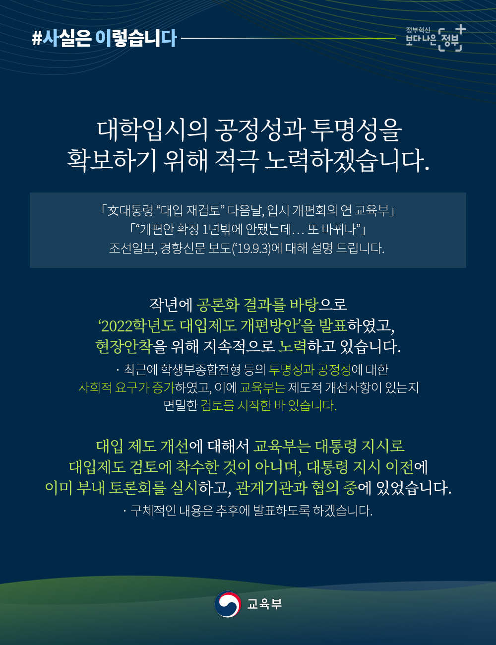 [더 투명하고 공정한 대학입시를 위해 노력하겠습니다] 본문