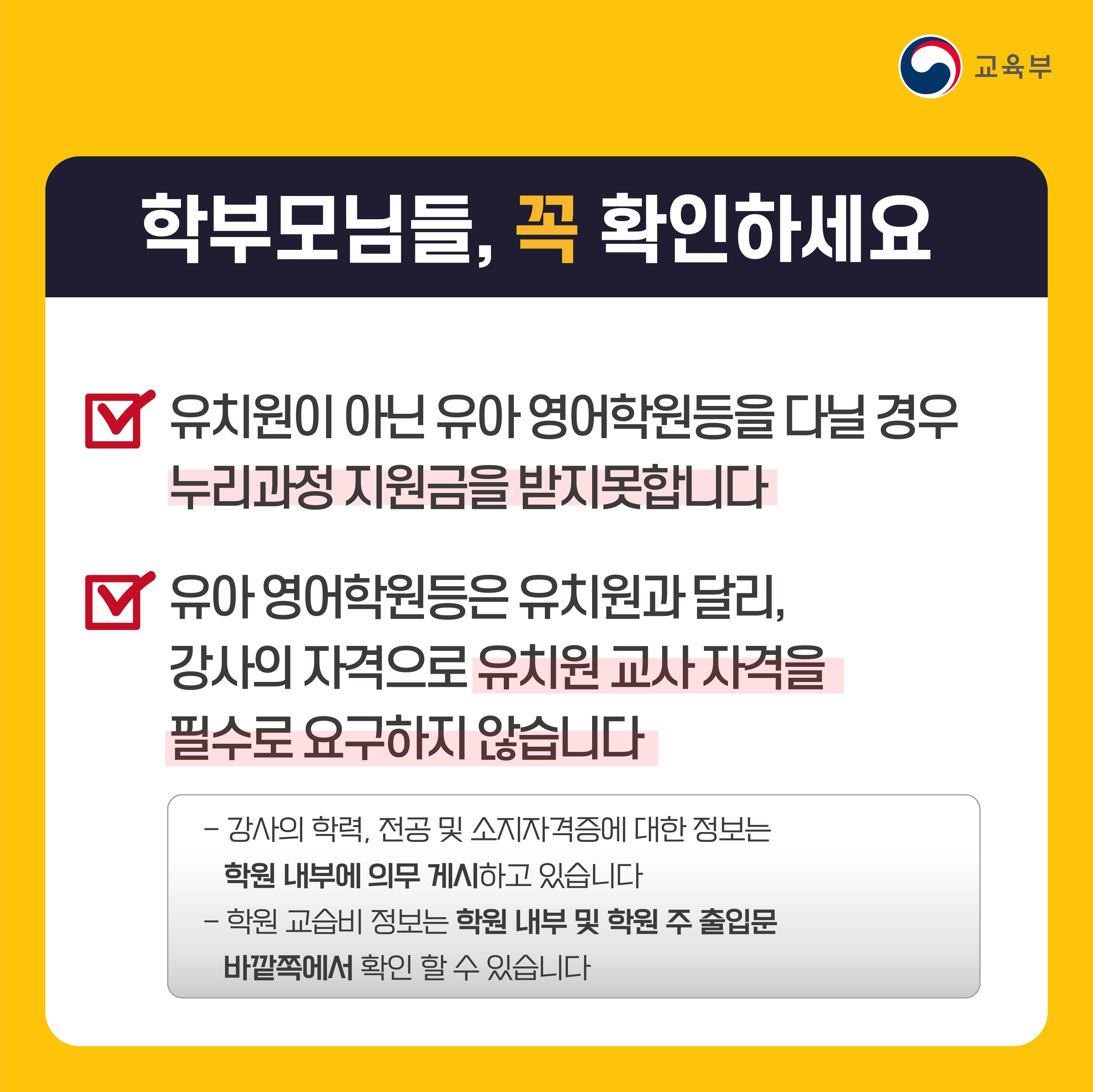 ✔️ 불법 사설 학원은 누리과정을 따르지 않습니다