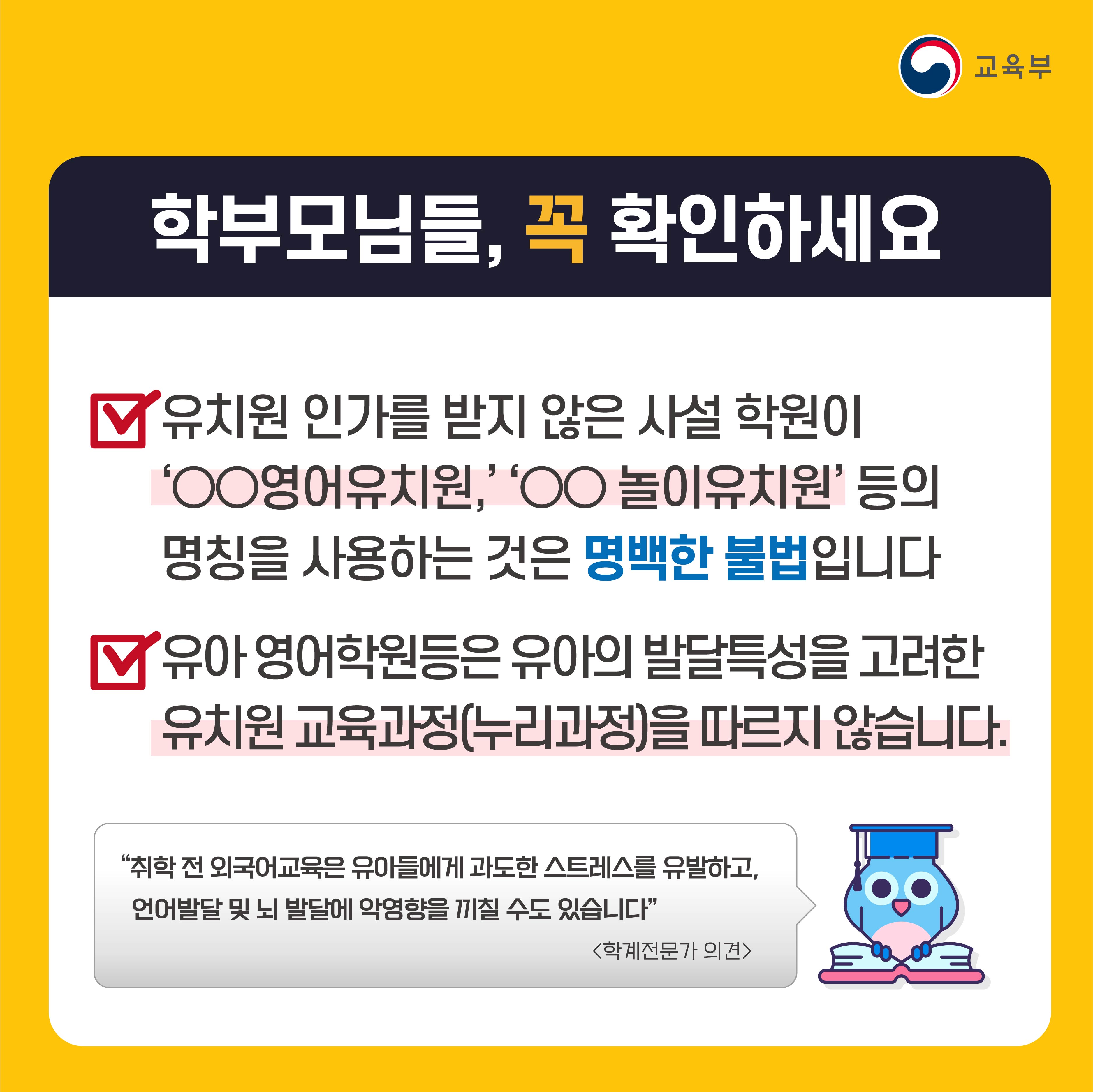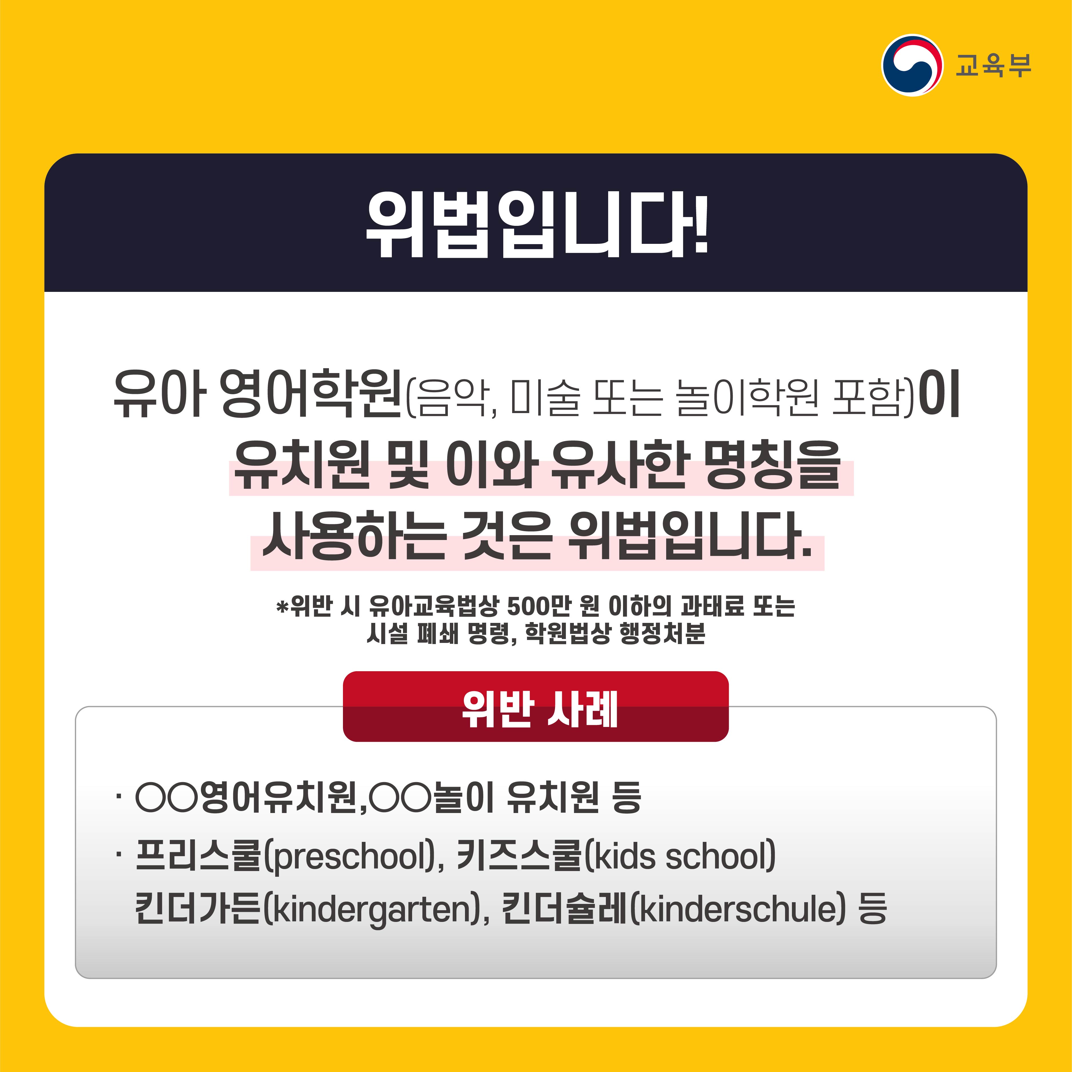 ✔️ 유아 영어학원의 유치원 명칭 사용은 불법입니다
