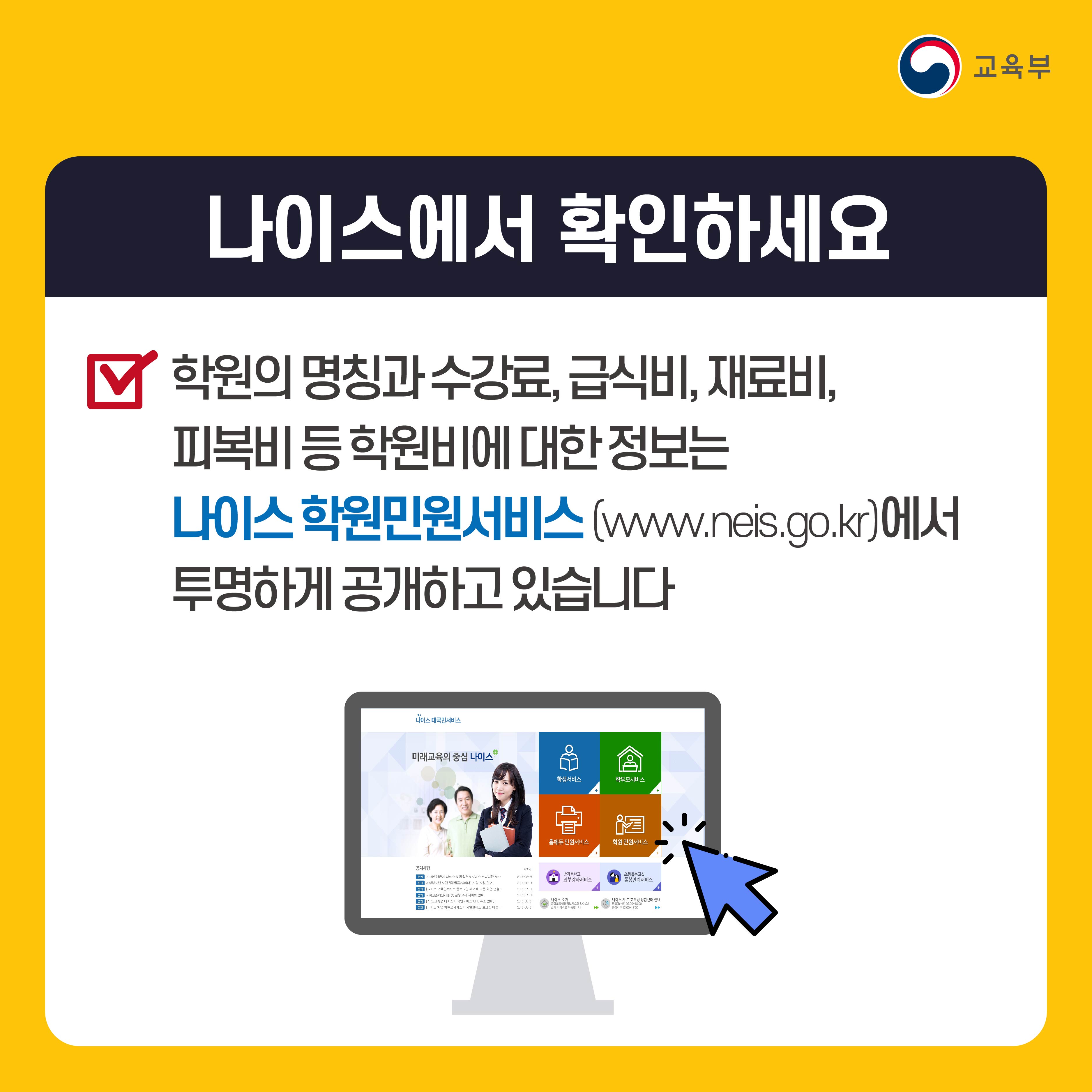 ✔️ 학원비 정보는 나이스(www.neis.go.kr)에서 확인하세요