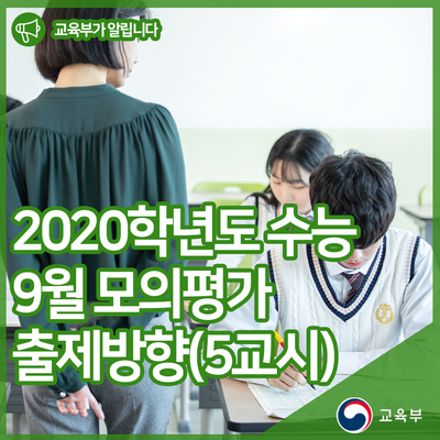 | 2020학년도 수능 9월 모의평가 출제 방향(3교시) 영어 영역 (0) | 2019.09.04 |
