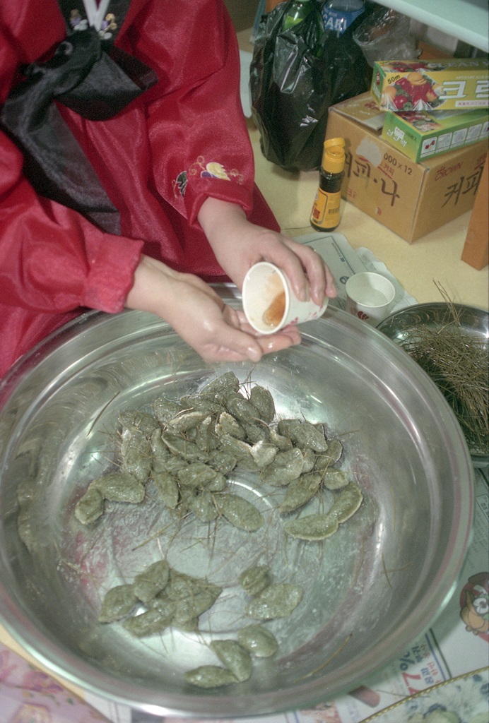 다 익은 송편엔 사진과 같이 참기름을 발라 완성시켜줍니다!