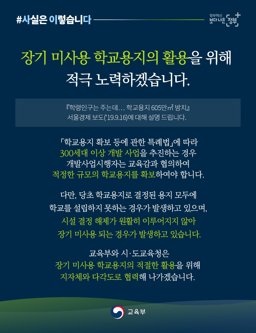 장기 미사용 학교용지를 적절하게 활용하겠습니다.