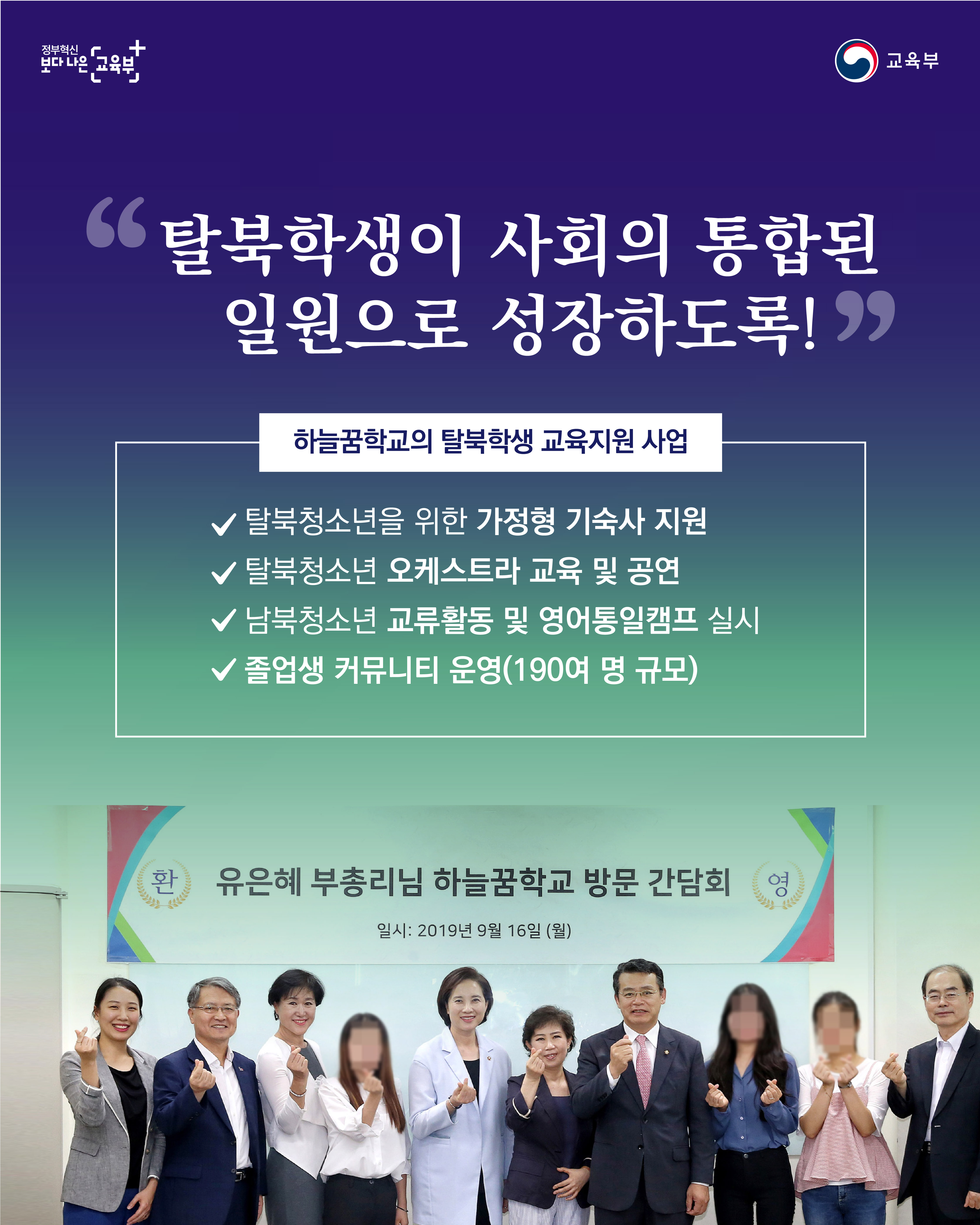 탈북학생 교육 지원정책을 내실 있게 추진해 나가겠습니다.
