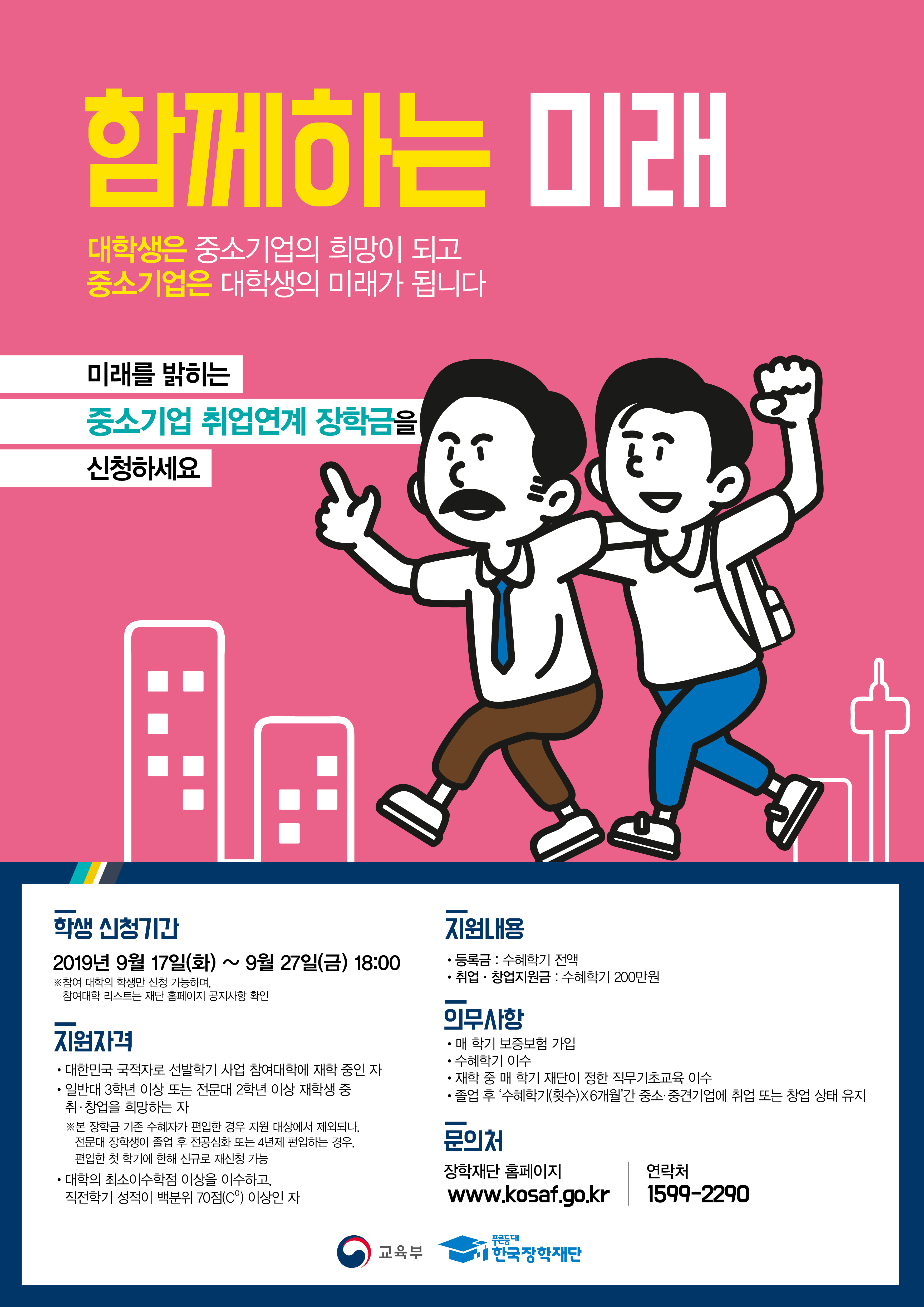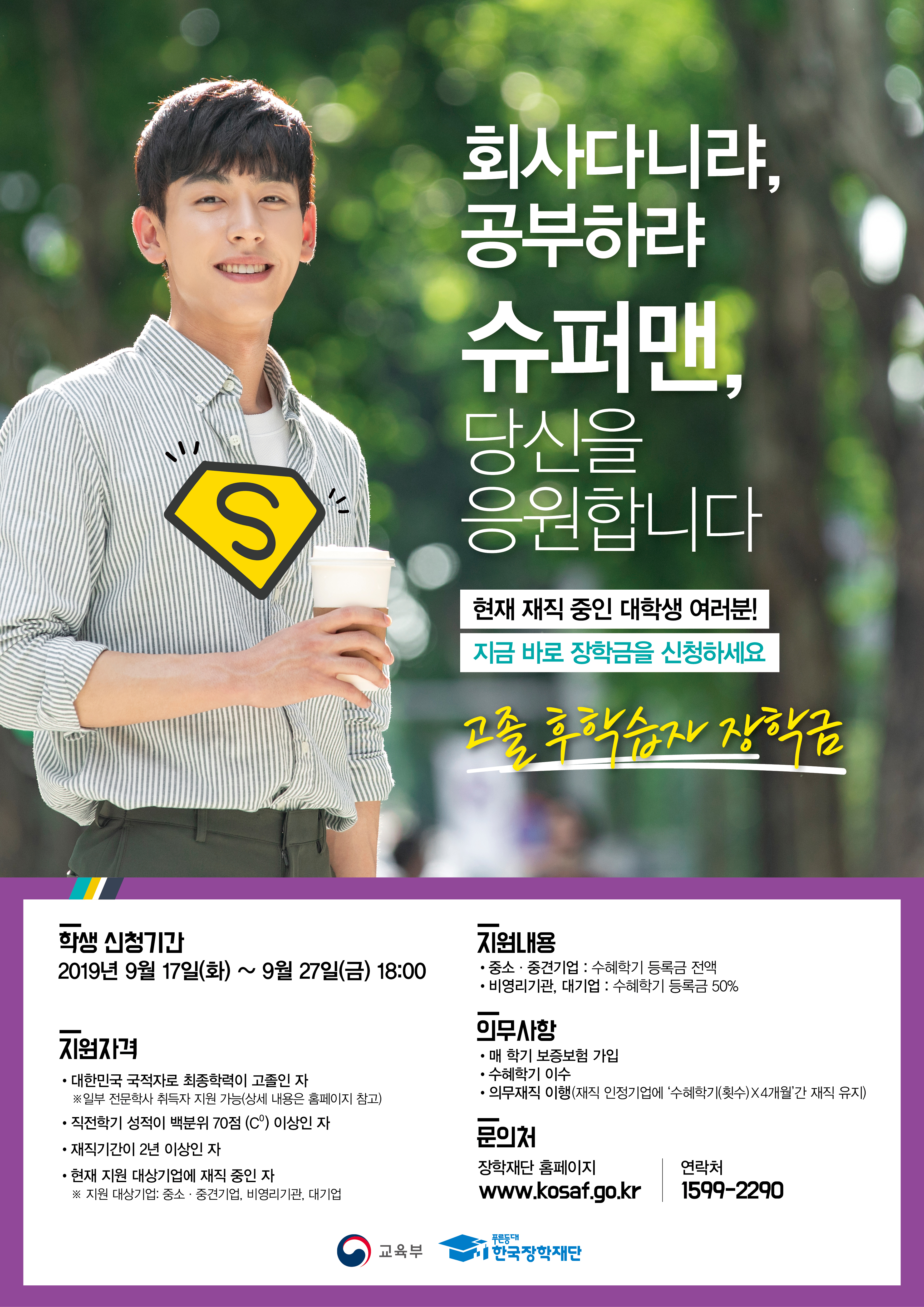 희망사다리 장학금, 혜택의 폭이 넓어집니다- 2019년 2학기 희망사다리 장학금, 이달 17일(화)부터 27일(금...