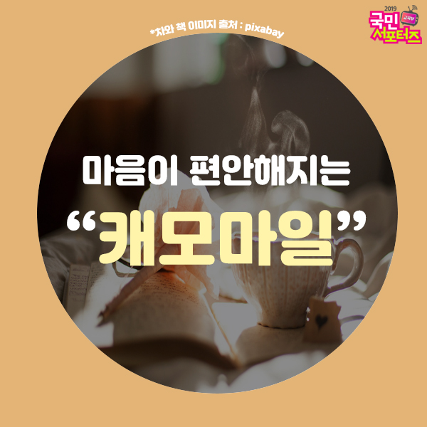 캐모마일은 땅에서 나는 사과라는 뜻을 가지고 있습니다. 주로 유럽에서 나는 허브인데요. 달콤하고 상쾌한 향을 가지고 있어서 차로 마시는 것이 좋아요. 마음이 진정되고 피로가 풀리고 몸을 편안하게 만들어주는 효과가 있어요. 원산지는 외국이지만 최근에는 대형마트에 가면 캐모마일 티백을 쉽게 볼 수 있어요. 대추차처럼, 수험생분들이 자기 전이나 안정이 필요할 때 한 잔씩 마시면 좋을 것 같아요!
