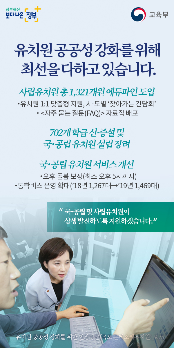 서비스 개선 등을 통해 유치원 공공성을 더욱 강화하겠습니다.