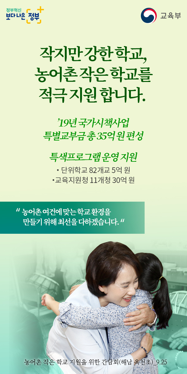 작지만 강한 농어촌 작은학교를 만들기 위해 최선을 다하겠습니다.