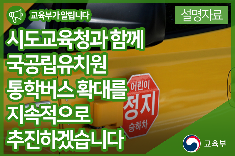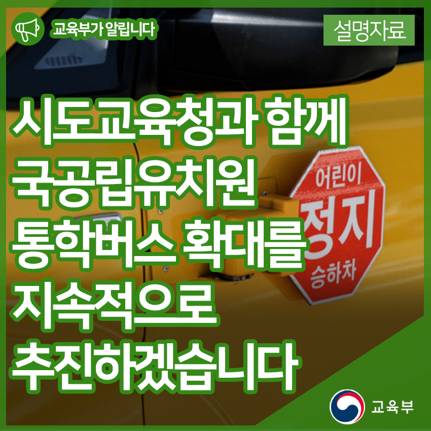 교육부는 시도교육청과 함께 국공립유치원 통학버스 확대를 지속적으로 추진하겠습니다