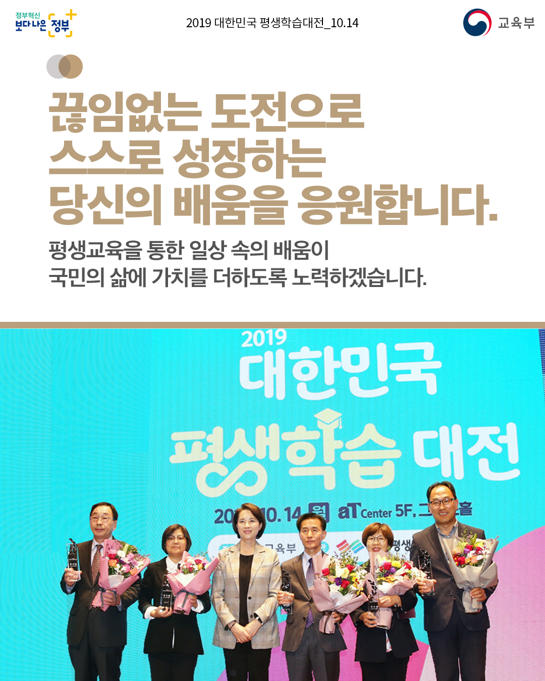 2019 대한민국 평생학습대전 개최- ‘평생학습 삶의 가치를 더하다’를 주제로 평생학습 우수사례 공유- 대...