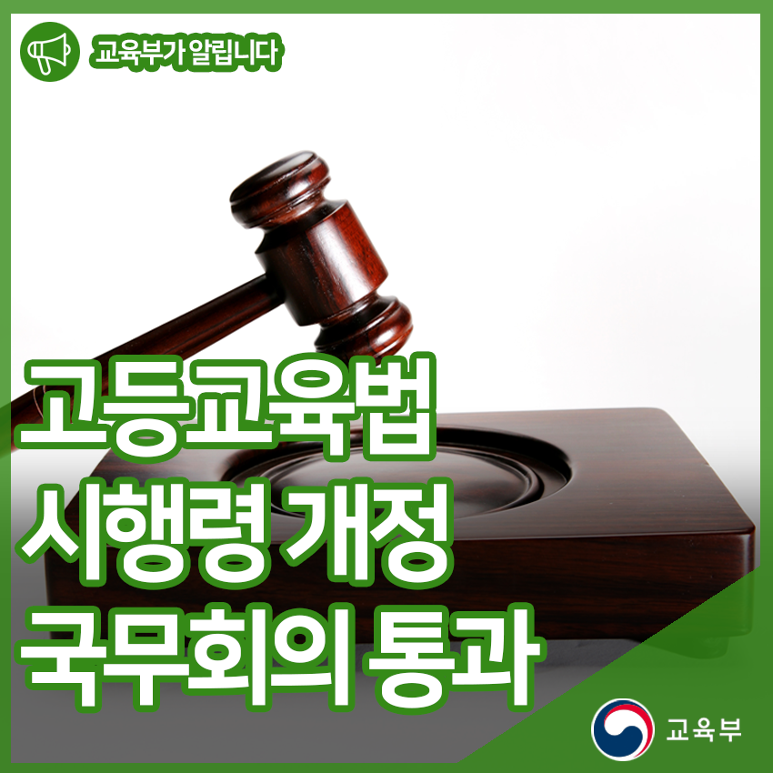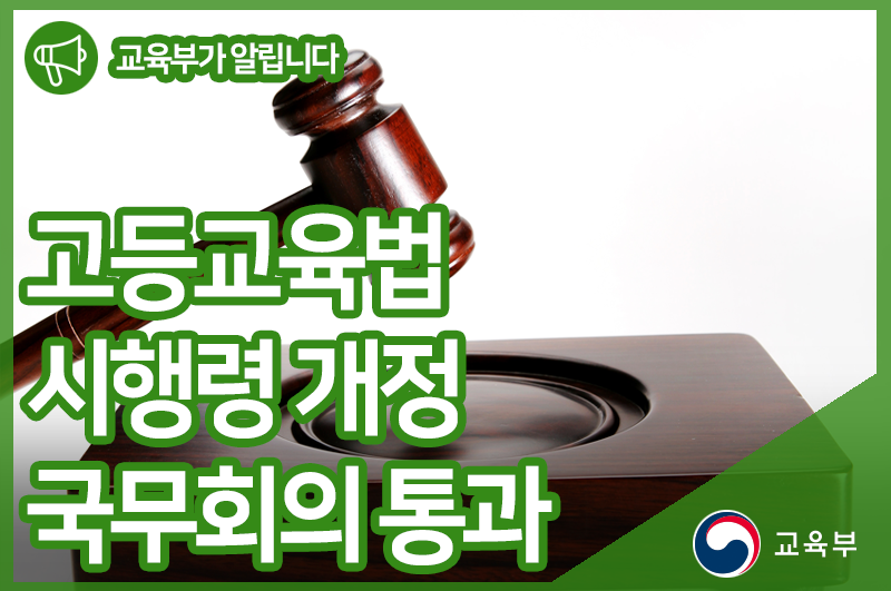 교육부(부총리 겸 교육부장관 유은혜)는 10월 15일(화) 국무회의에서 「고등교육법 시행령」 개정안이 심의・의결되었다고 밝혔다. 이번 시행령 개정은 대입 공정성을 보다 강화하기 위한 목적으로 올해 4월 「고등교육법」상 대학 입학사정관 배제·회피 근거조항이 신설됨에 따라 후속조치로 회피 신고대상을 구체화한 것이다.