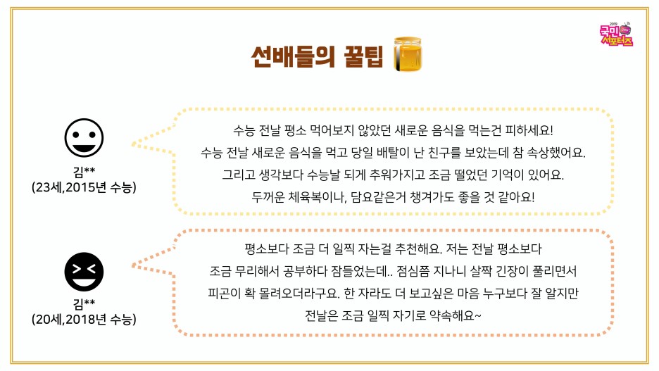 그러면 다시 한번 정리해보겠습니다! 선배들의 꿀팁 두 가지!