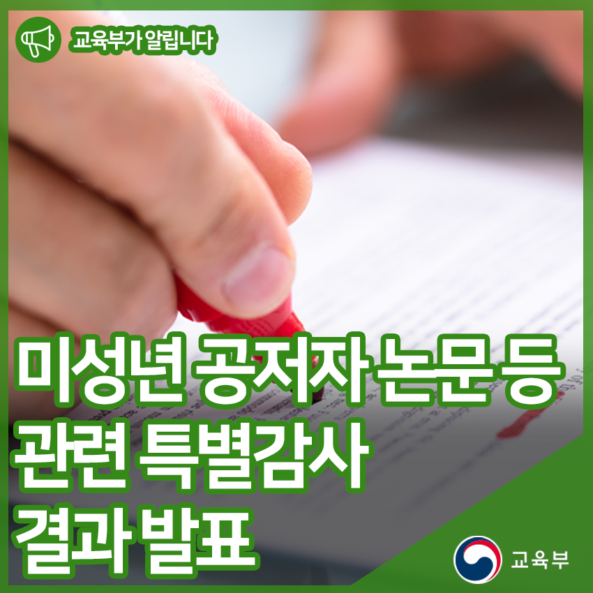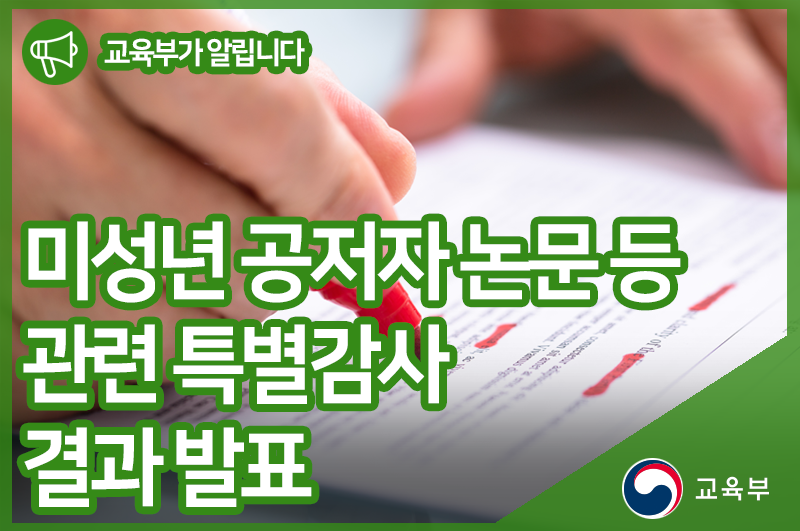 교육부, 미성년 공저자 논문 등 관련 특별감사 결과 발표