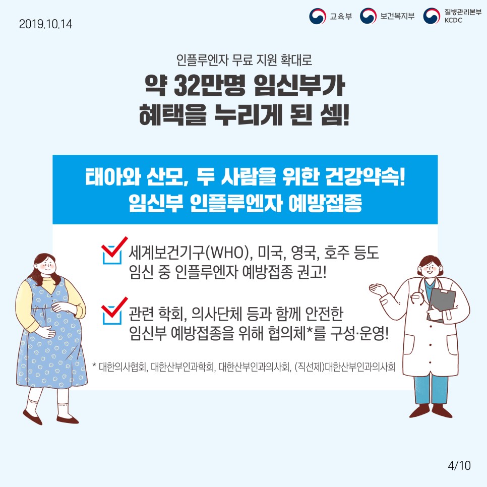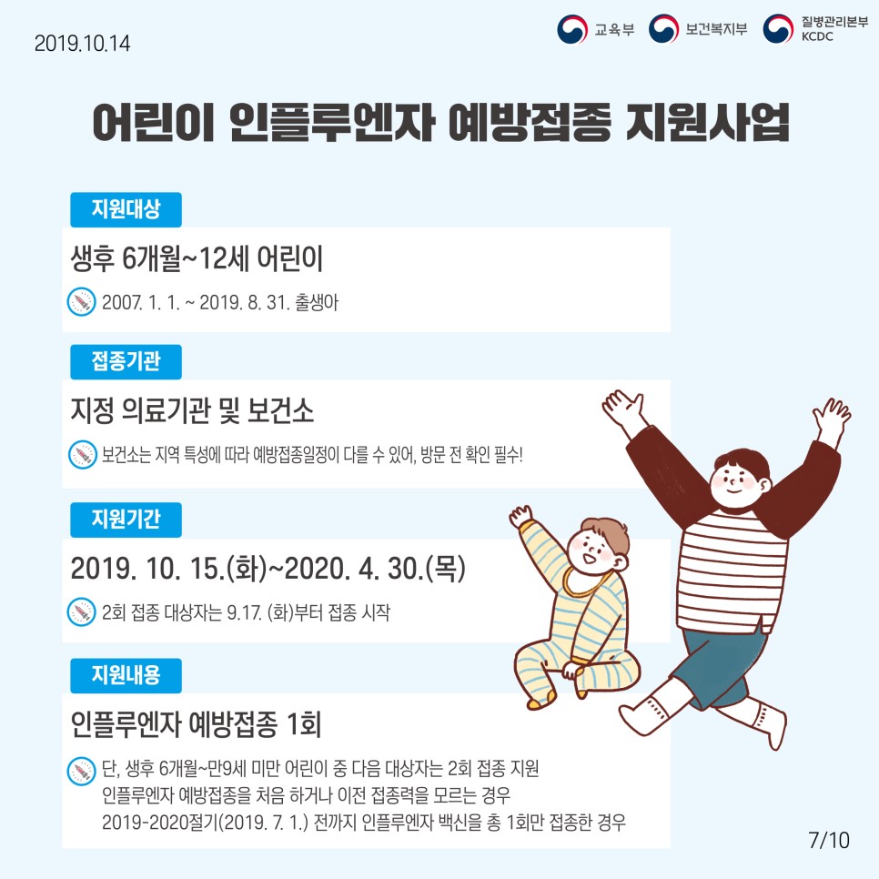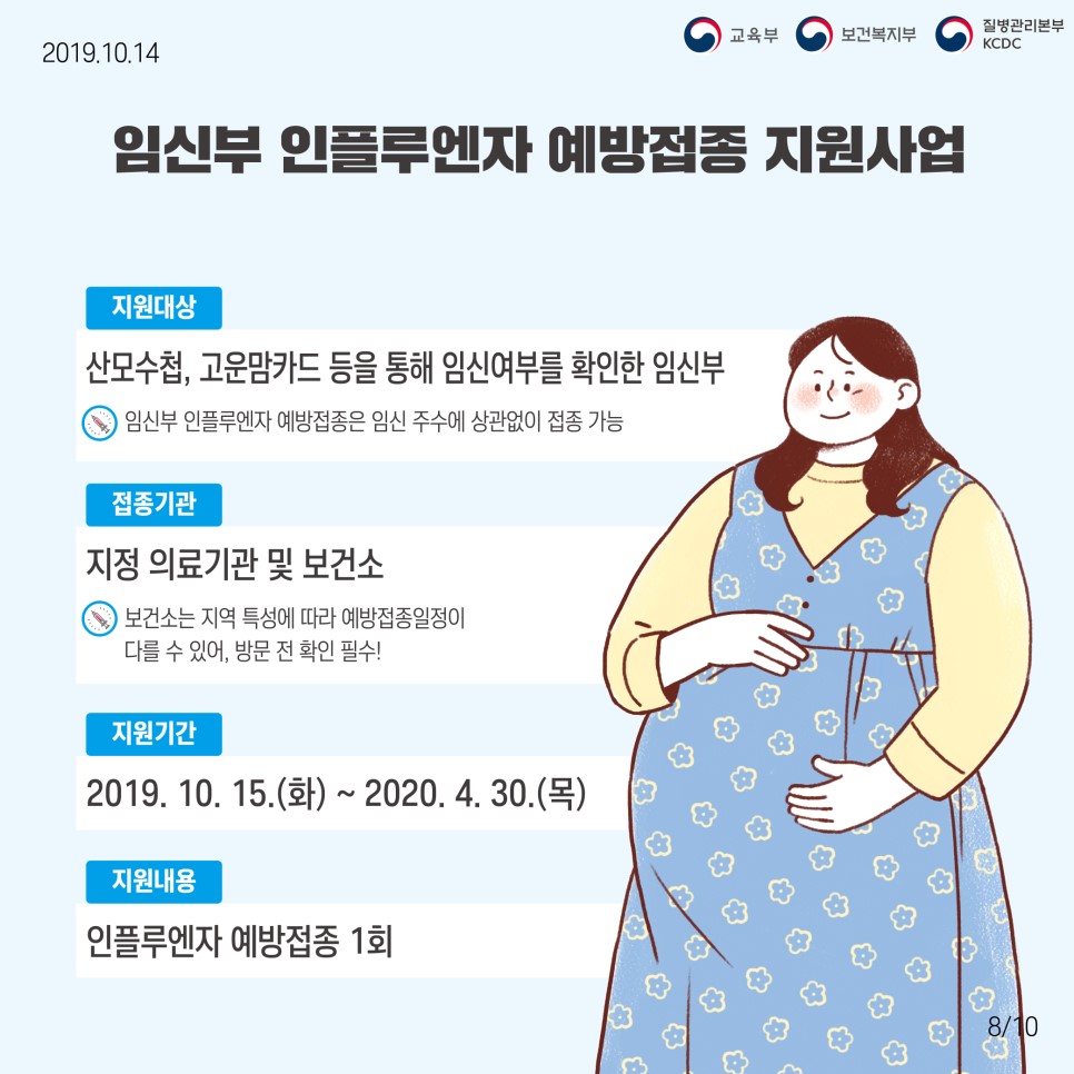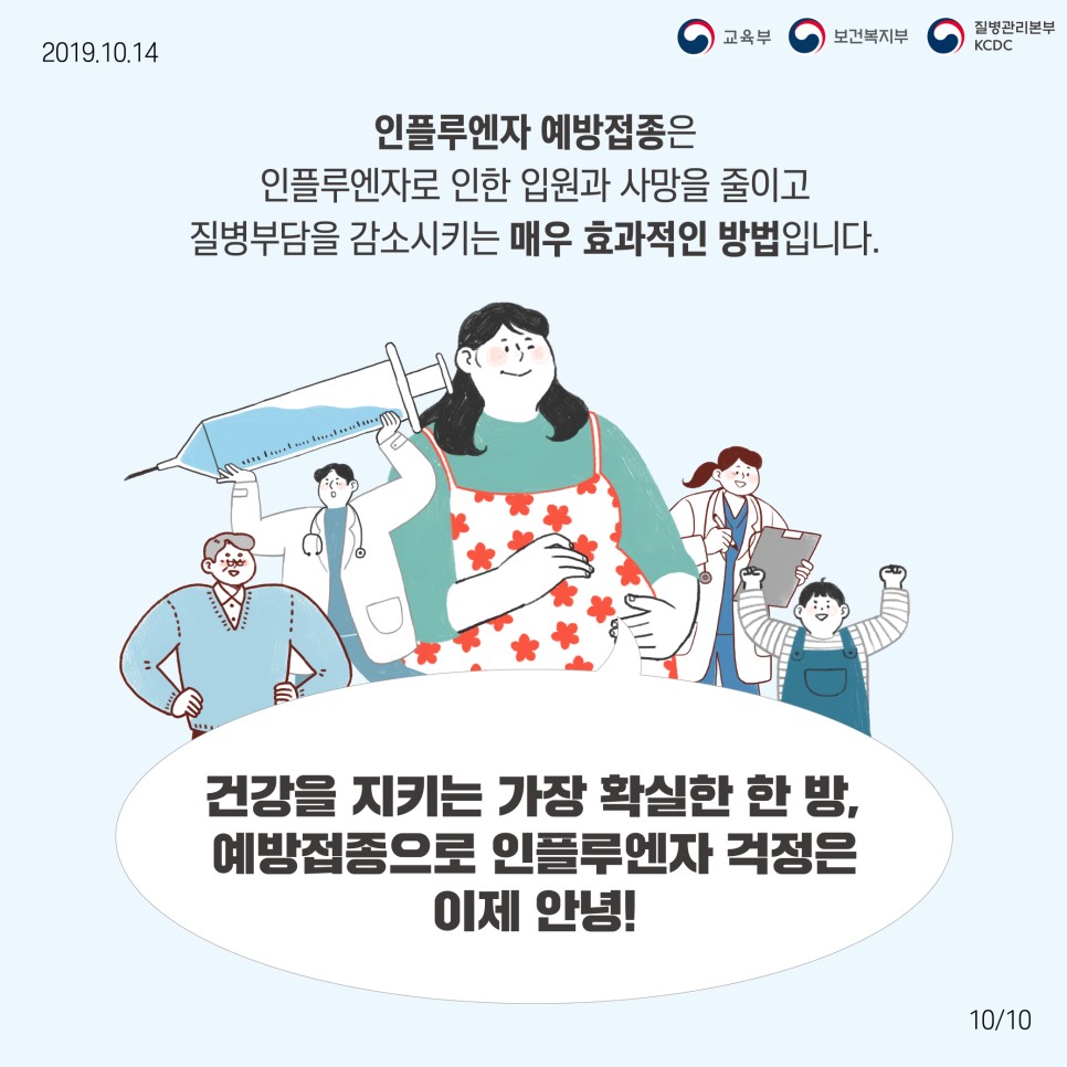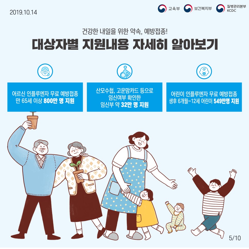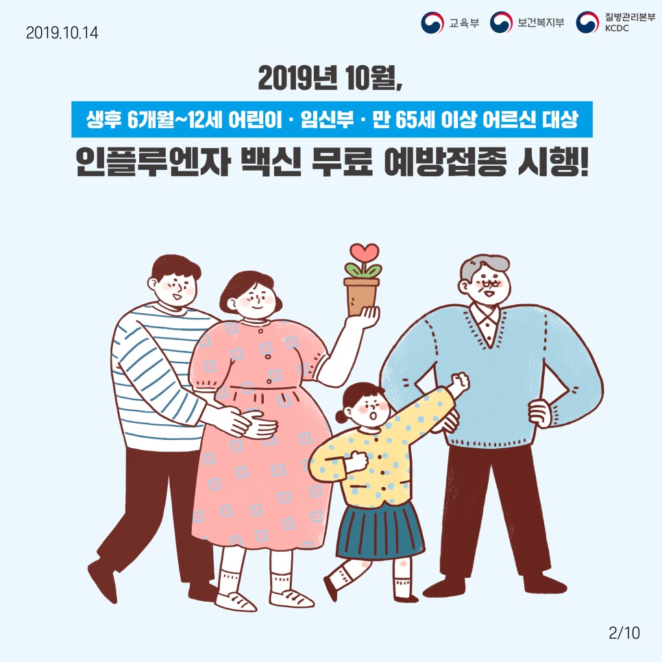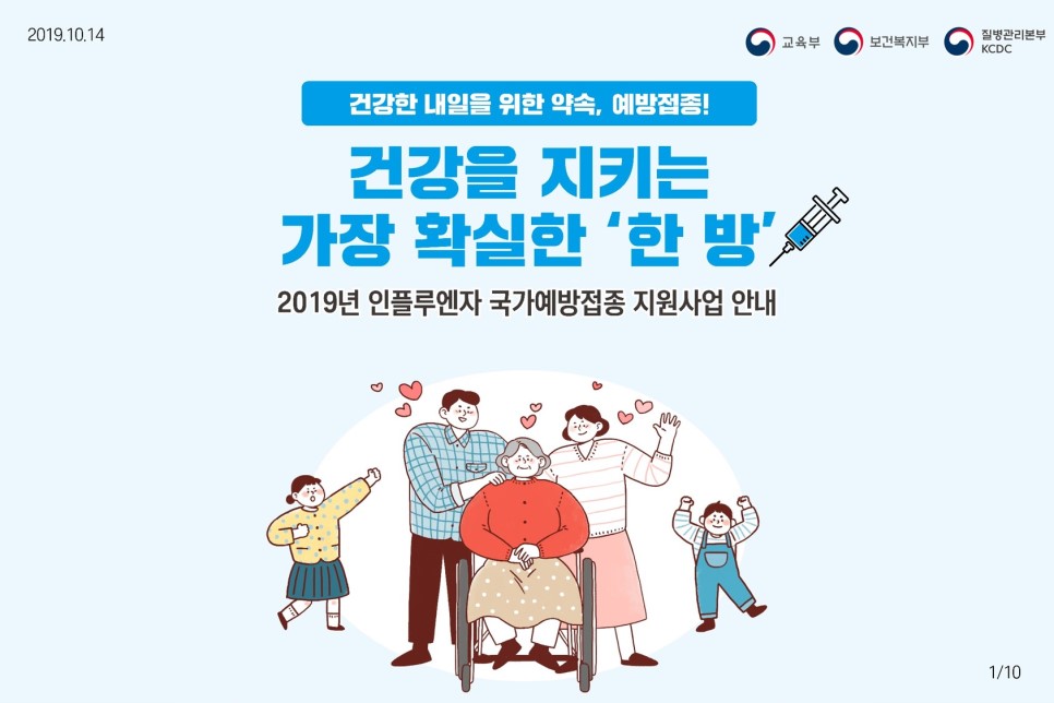 10월부터 인플루엔자 백신 무료예방접종을 시행합니다.