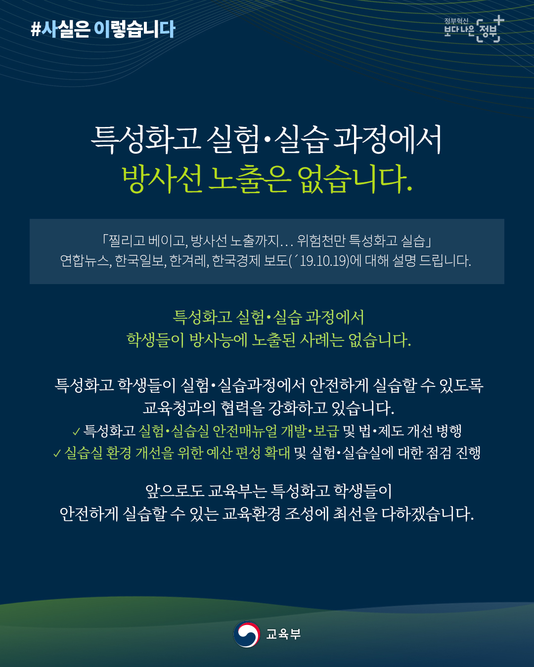 [특성화고 실험 실습 과정에서 방사능 노출 사례는 없습니다.] 본문