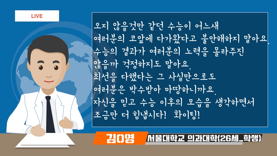 오늘은 이렇게 2020년도 수학 능력 시험을 앞둔 수험생 여러분께 도움이 될 수 있도록 인터뷰를 진행해보았습니다