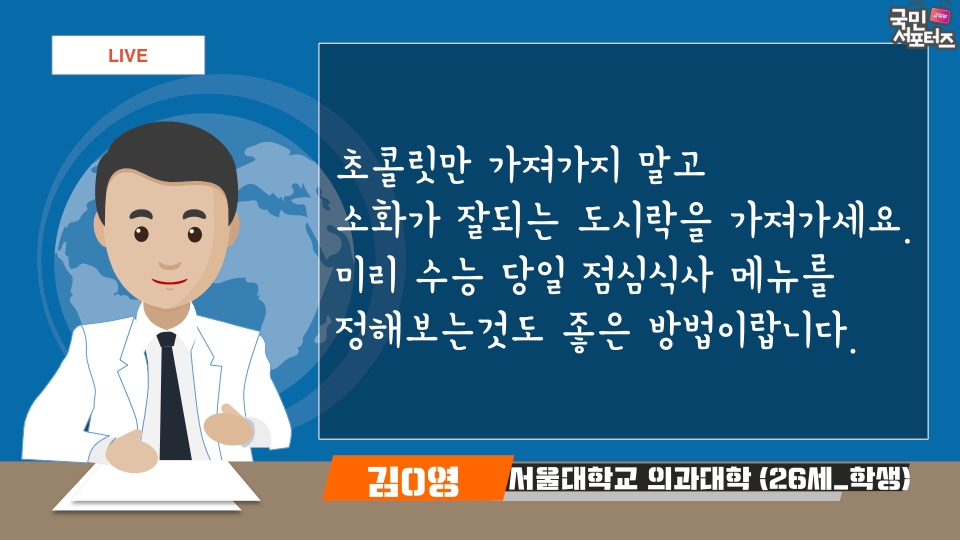 수능 당일에는 꼭 초콜릿 말고 소화가 잘 되는 도시락을 준비해 가세요.