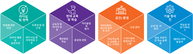 * 4대 구성영역 : 리더십/정책, 학습법/교실현대화, 미래기술청사진(ICT), 환경/공간