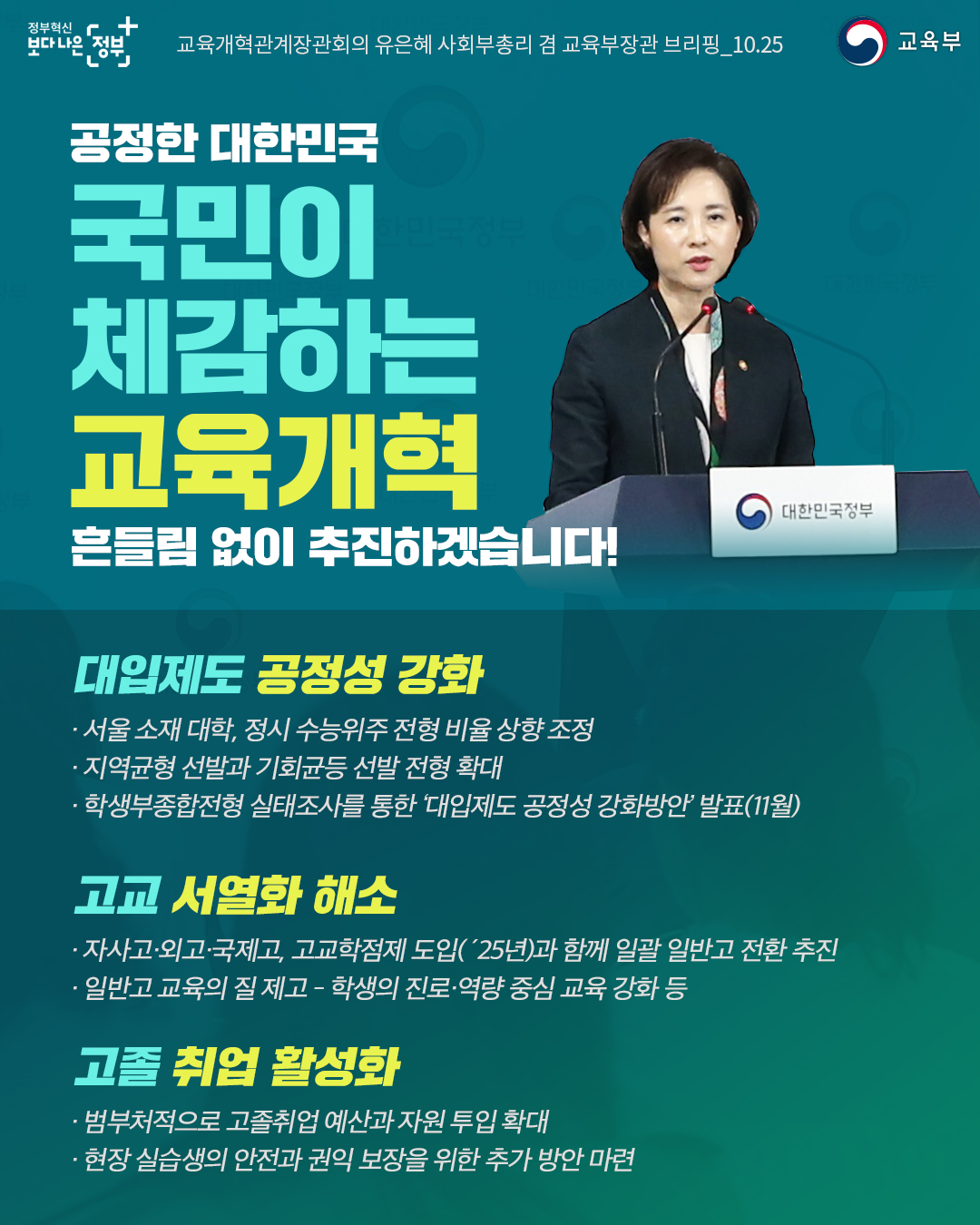 교육에 대한 신뢰를 회복하고 공정한 과정을 국민들과 함께 만들어가도록