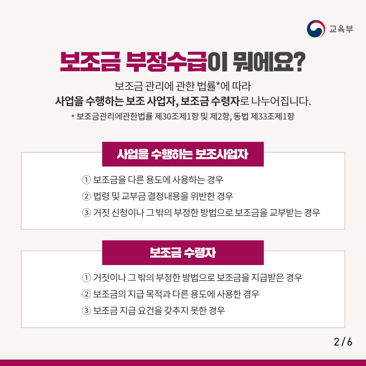 [교육분야 보조금 부정수급, 명백한 범죄행위입니다] 본문