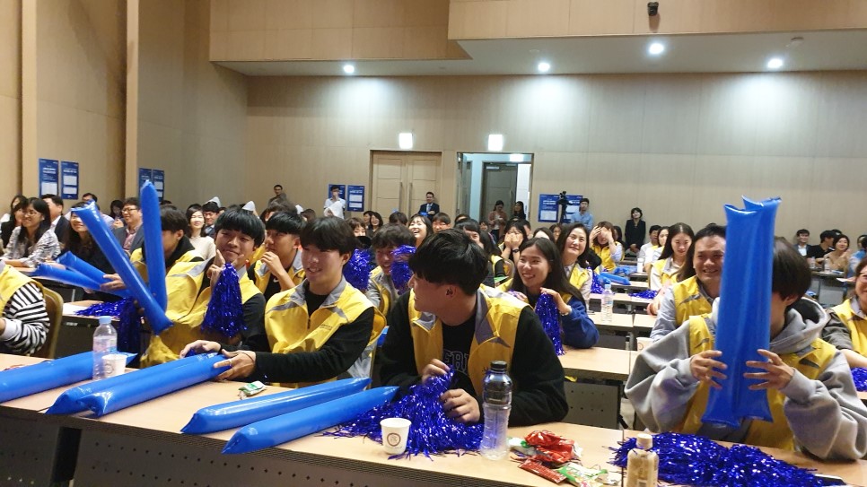 강릉원주대학교를 응원하기 위해 많은 학생들이 자리를 빛내주고 있다