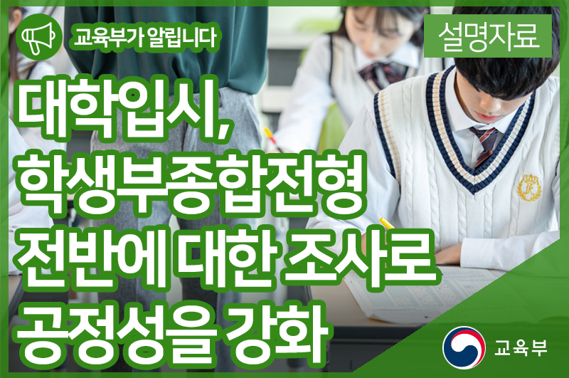 대학입시, 학생부종합전형 전반에 대한 조사로 공정성을 강화하겠습니다.