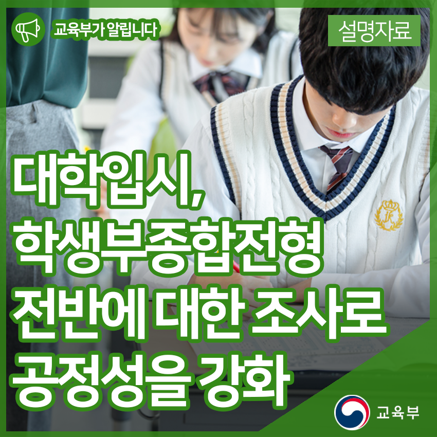 대학입시, 학생부종합전형 전반에 대한 조사로 공정성을 강화하겠습니다. 본문
