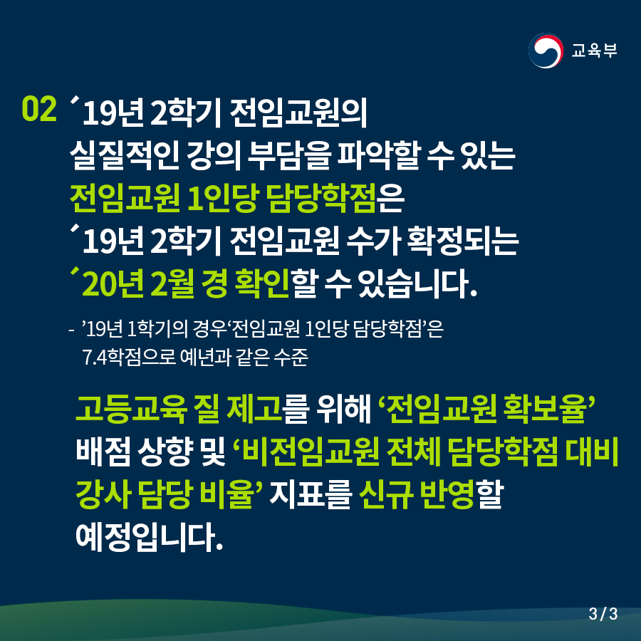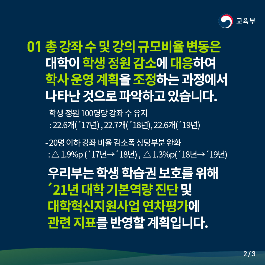 총 강좌 수 감소는 학생 정원 감소가 주된 원인인 것으로 파악되며, 전임교원의 실질적 강의 부담은 ’20년 2월경 확인할 수 있습니다.