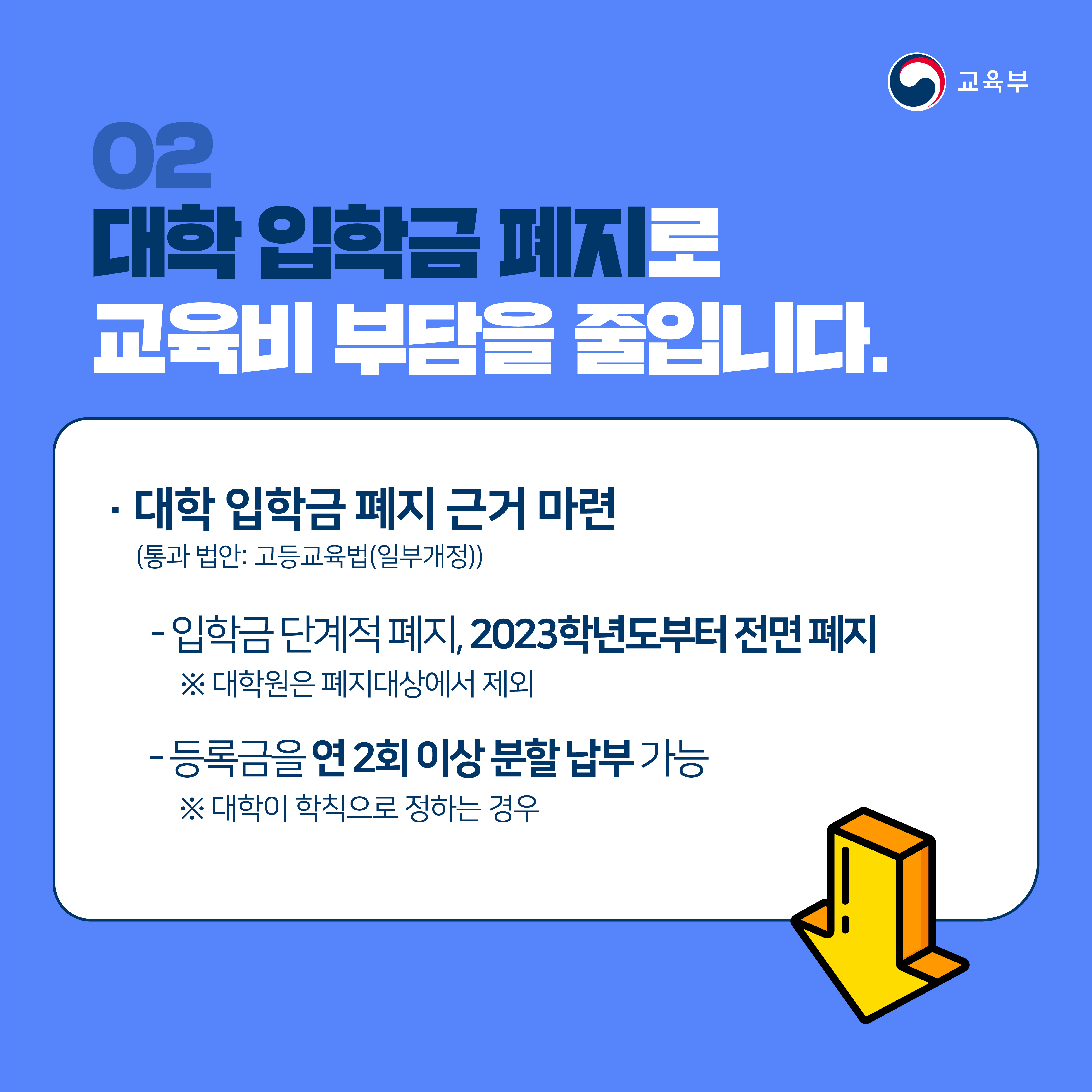 고교무상교육의 안정적인 시행과 대학 입학금 폐지 등 국가책임 교육을 위한