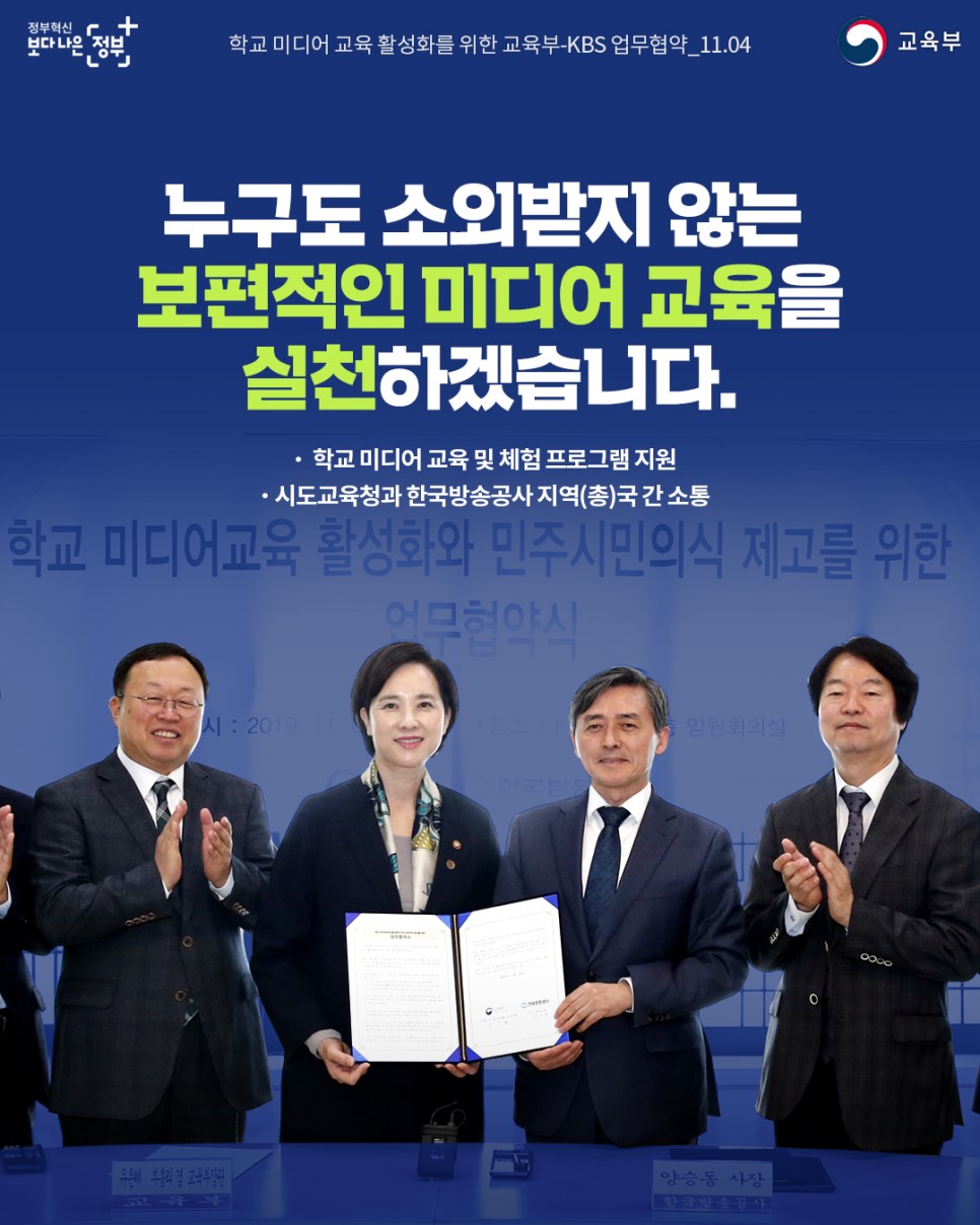 교육부와 한국방송공사는 학교 미디어 교육 활성화와 민주시민의식 제고를 위한