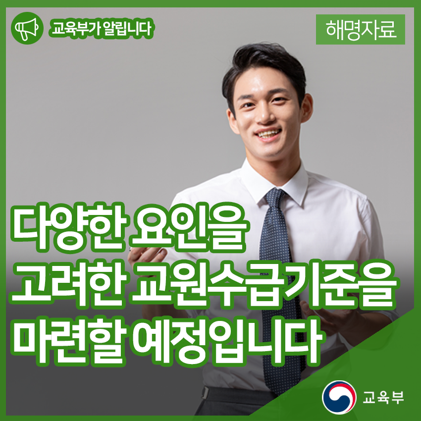 교육부는 미래교육 환경 변화에 대응하기 위하여 다양한 요인을 고려한 교원수급기준을 마련할 예정입니다. 본문