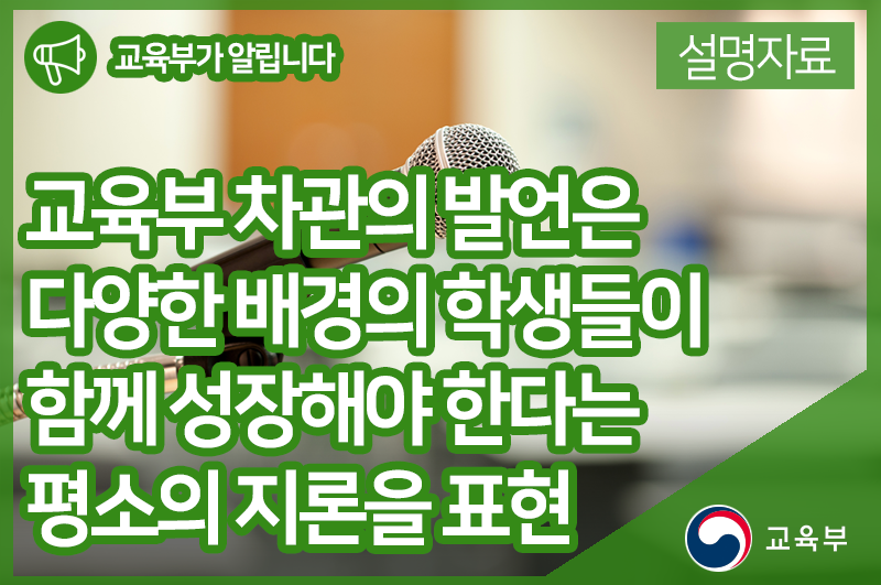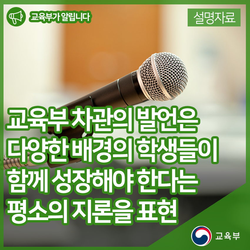 교육부 차관의 발언은 다양한 배경의 학생들이 함께 성장해야 한다는 평소의 지론을 표현한 것입니다.