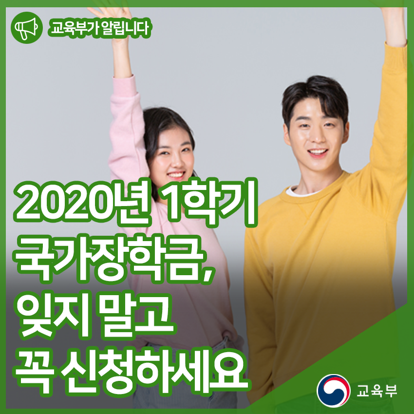 2020년 1학기 국가장학금, 잊지 말고 꼭 신청하세요 본문