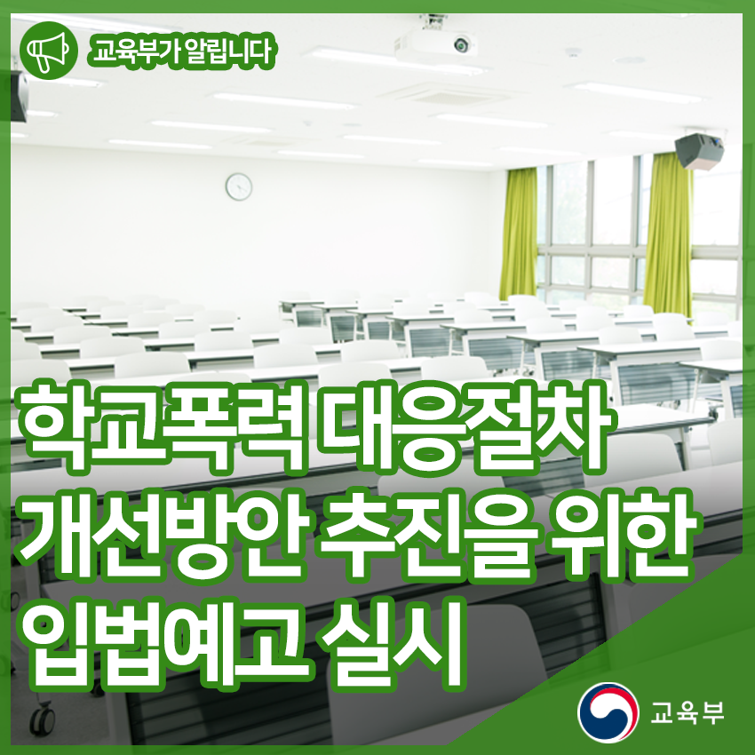 학교폭력 대응절차 개선방안 추진을 위한 입법예고 실시 본문