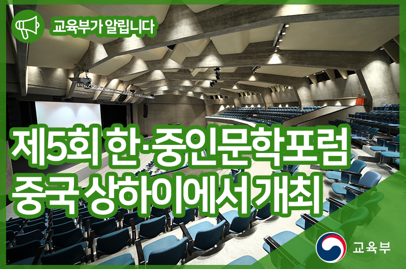 교육부(부총리 겸 교육부장관 유은혜)와 한국연구재단(이사장 노정혜)은 중국사회과학원과 함께 11월 22일(금)~23일(토) 이틀간 「제5회 한·중인문학포럼」을 중국 상하이에서 개최한다.