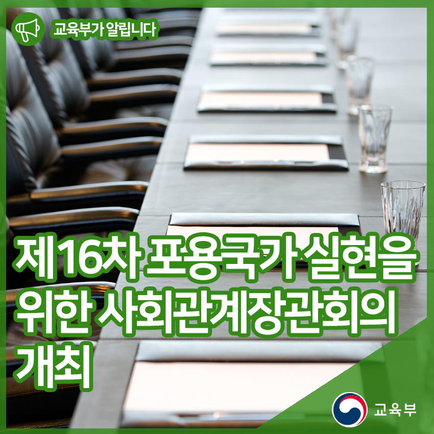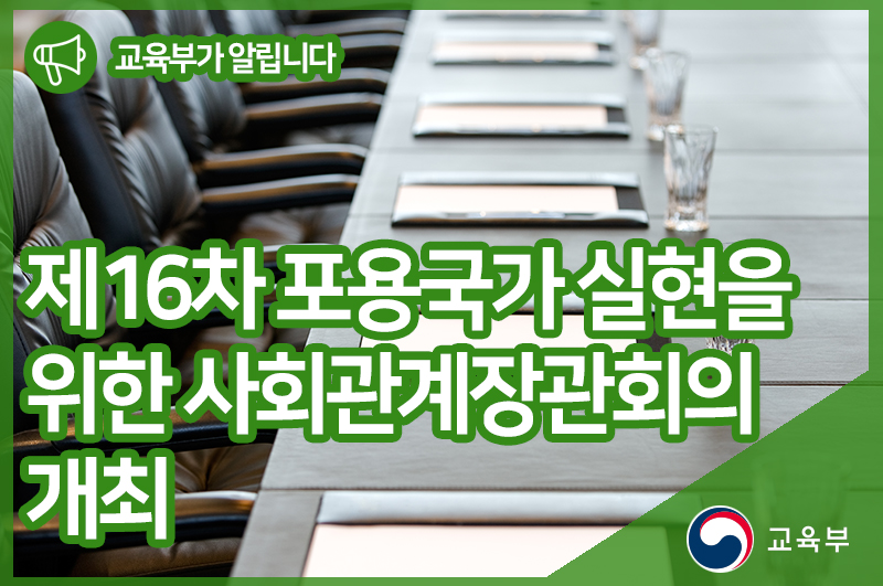교육부(부총리 겸 교육부장관 유은혜)는 11. 22.(금) 정부세종청사에서 제16차 포용국가 실현을 위한 사회관계장관회의를 개최한다.